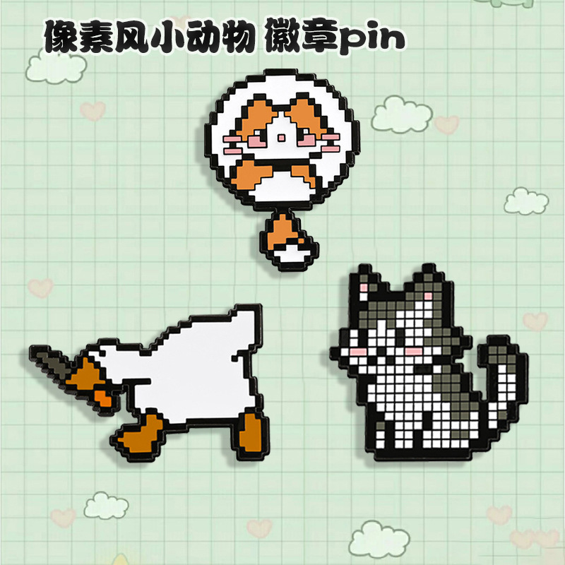 かわいい漫画ピクセル風小動物バッジpinアヒル子犬服装アクセサリーブローチ学生かばん装飾