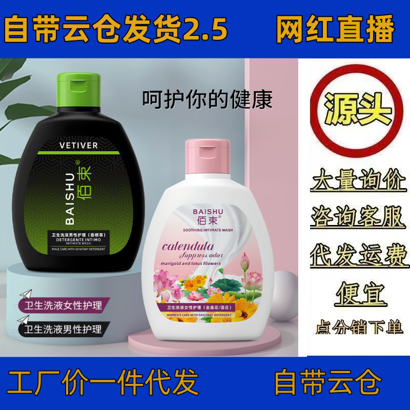 Baishu サニタリーローション男性と女性の陰部ケアセット抗菌かゆみ止めマイルドケア非刺激性洗浄液卸売