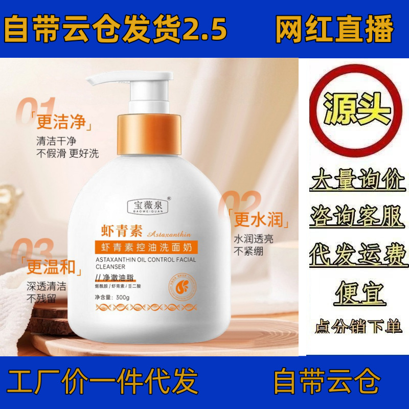 Baoweiquan アスタキサンチン オイル コントロール 保湿洗顔料 水分補給と若返り さわやかなアミノ酸洗顔料 300ml