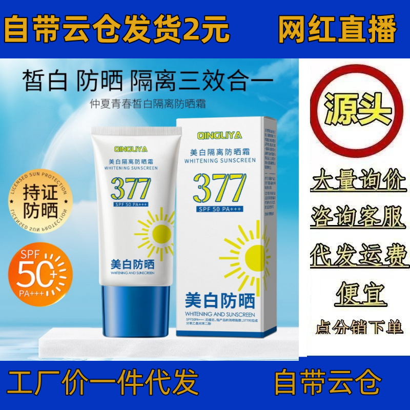 Qingliya 377 美白日焼け止めクリーム UV アイソレーション SPF50+ 軽くて通気性のある日焼け止めクリーム軍事訓練の必需品