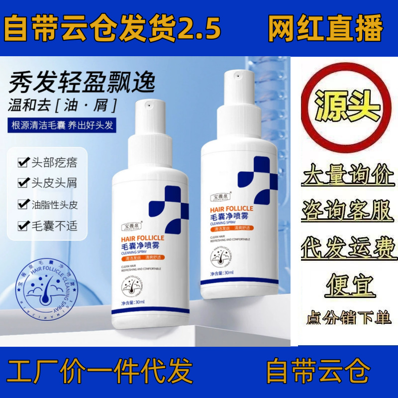 宝薇泉毛包浄噴霧除屑清潔温和深層コントロールオイルを刺激しない髪無洗スプレー卸売り