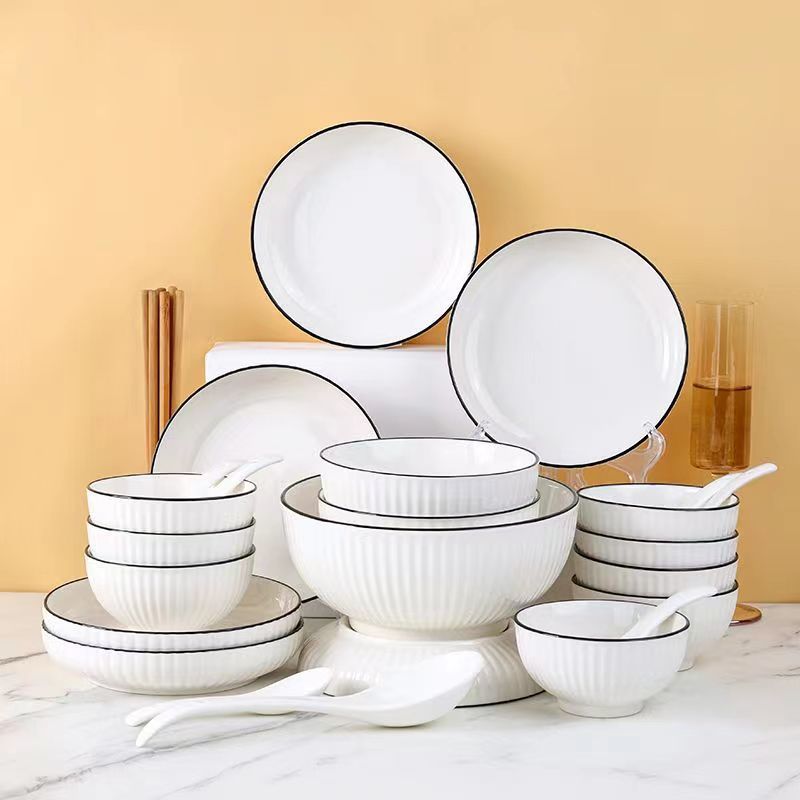 和風山田ボウルと皿、見栄えの良いボウルと皿のセット、家族用のダブル食器、家庭用食器、山田縦模様ボウル