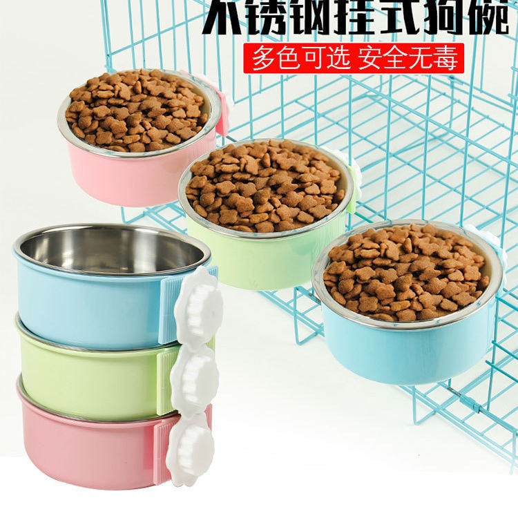 卸売りペットの猫の犬は碗を掛けて吊り式のキャンディー色のステンレスの犬の碗を掛けます。
