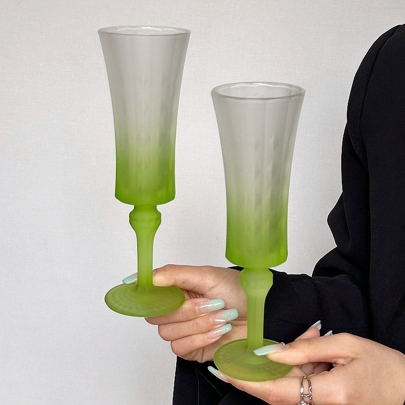 フロストグラデーショングリーングラス高足カップ洋酒白ワインカップシャンパンカップ高颜値飲料カップジュースカップ