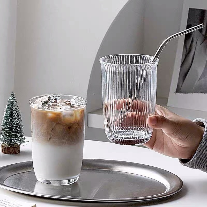 ニッチレトロ縦パターン不規則なウォーターカップアイスアメリカンラテカップコーヒーカップ水出しカップドリンクカップガラスカップ