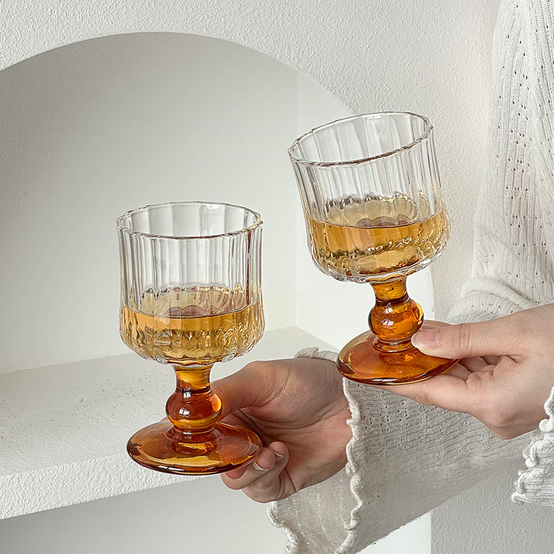 ダイヤモンドエンボスガラスインスタイルレトロ高価値甘いフルーツワインドリンクカップカクテルカップ背の高い赤ワイングラス