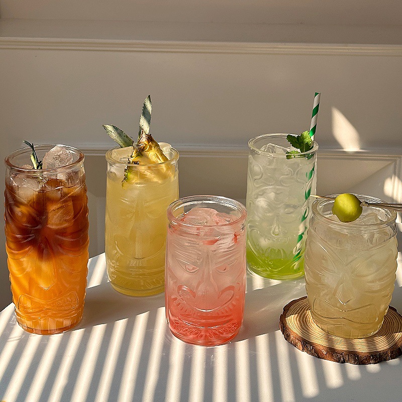 三星堆レリーフガラス透明ティキカップゴーストフェイスティキワイングラスパーソナライズされたクリエイティブカクテルカップジュースカップ
