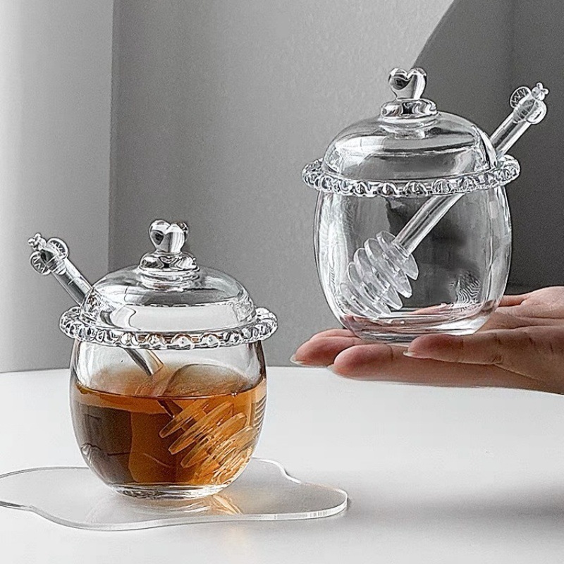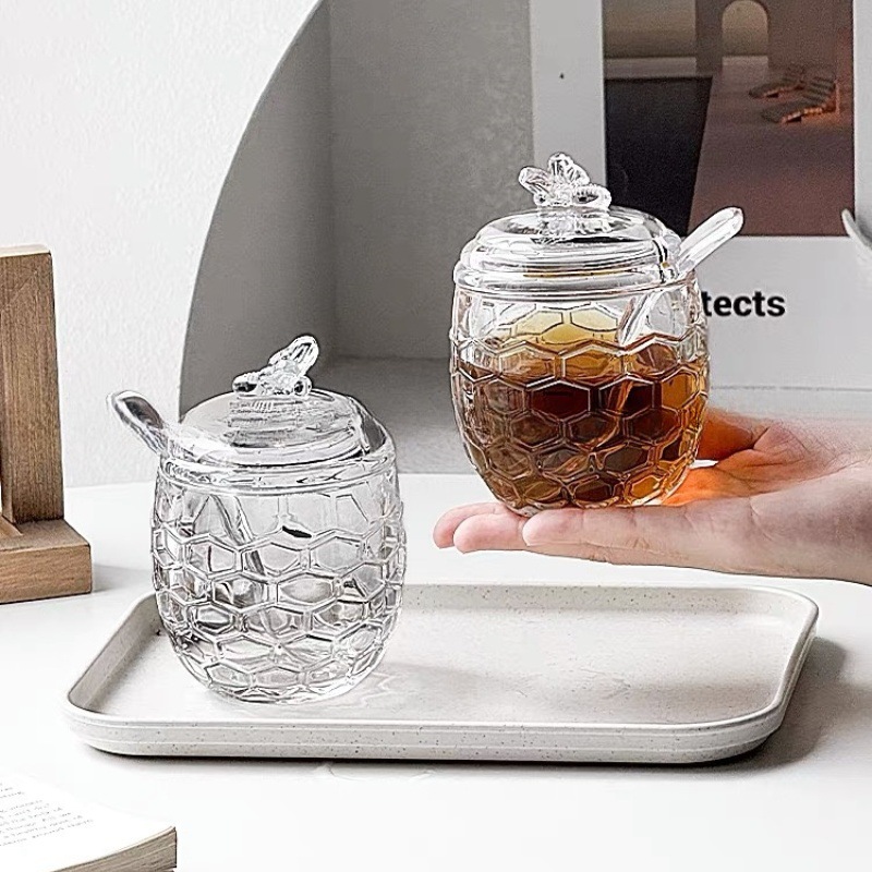 クリエイティブインズビーフレーバージャー ガラスジャー 透明マーマレード保存瓶 蓋付き ハニーポット クリエイティブ保存瓶