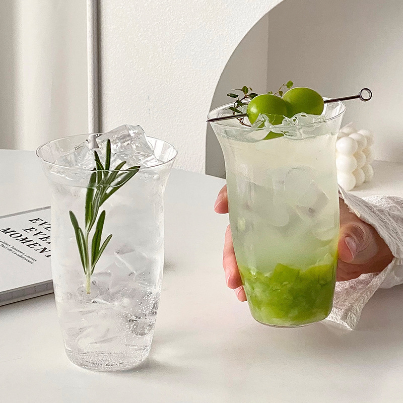 家庭用のシンプルな広口ガラスカップ、薄くて高温耐性、透明な冷たい飲み物、ジュース、コーヒーカップ、カクテルカップ