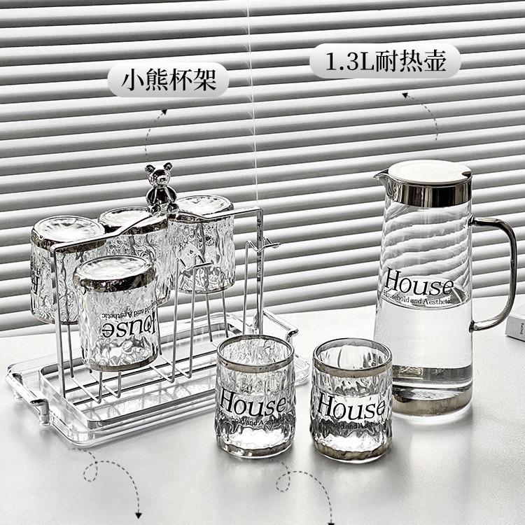 高級ガラスウォーターセット、モダンなホームリビングルームのおもてなし耐熱ティーポット、高価値のドリンクカップ