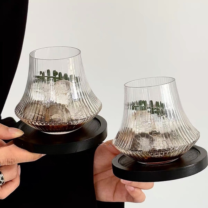ニッチクリエイティブ縦模様水出しカップガラスアイスアメリカンラテカップコーヒーカップドリンクカップウイスキーワインカップ