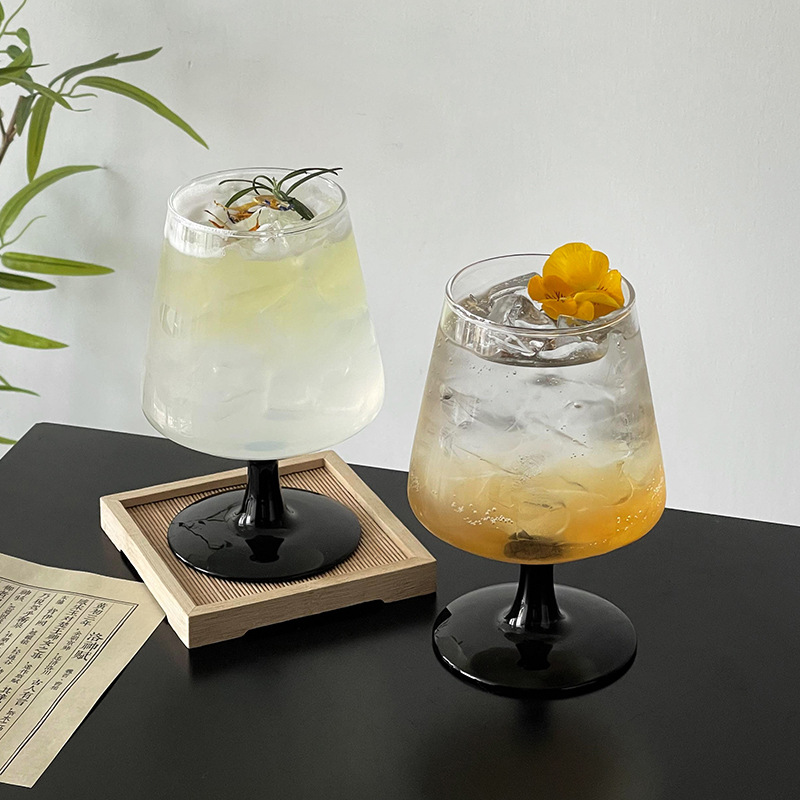 中国茶酒グラス、黒底背の高いグラス、見栄えの良いカクテルグラス、ほろ酔いカクテルグラス、スパークリンググラス、ウォーターグラス
