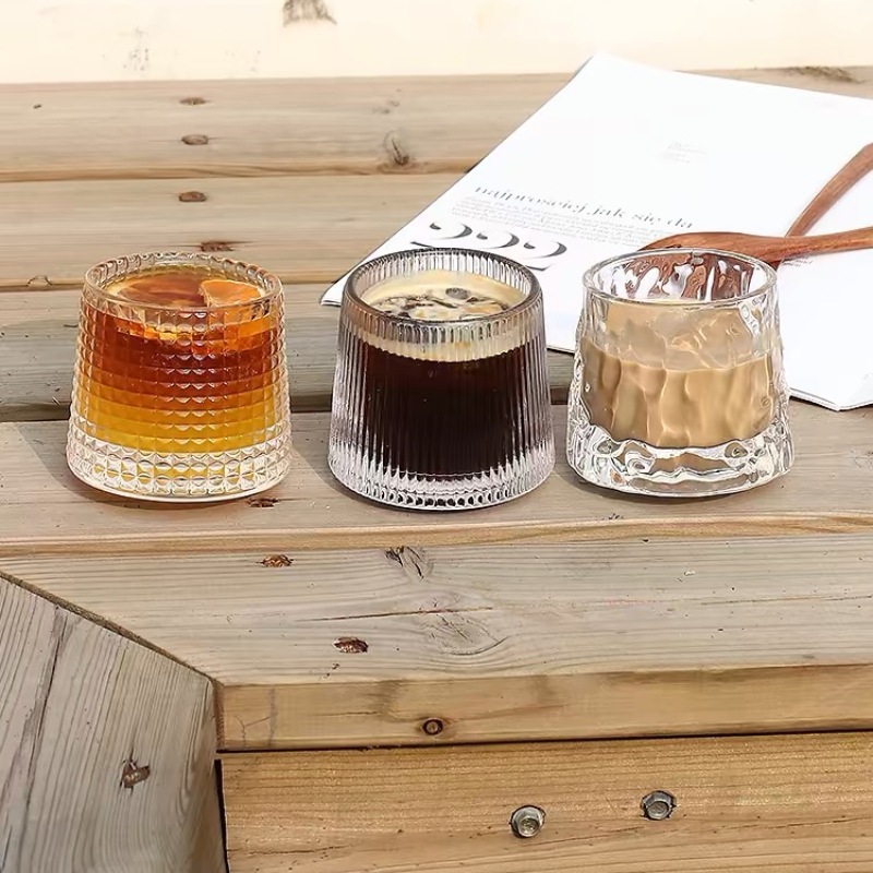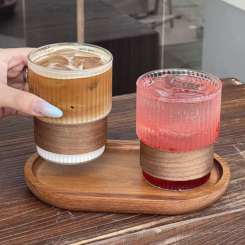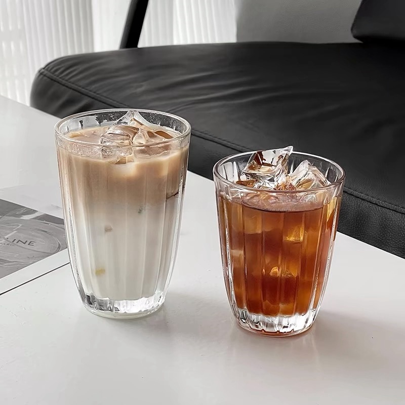 Ins風シンプル縦縞グラスレトロ氷アメリカラテコーヒーカップ家庭用水カップ冷たいカップ