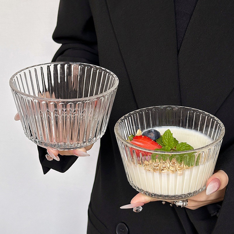 高級感ins風縦紋デザートガラス碗朝食碗果物サラダ麦片碗アイスクリーム碗デザート碗