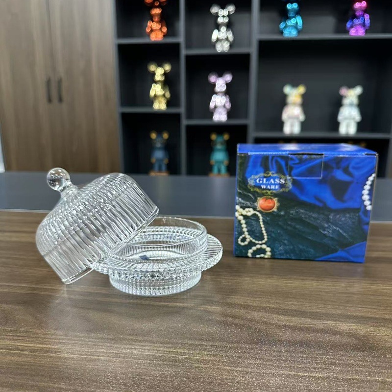 中国式創意蓋付き茶点皿透明ガラス円錐デザート杯午後茶軽食果物菓子ガラス杯