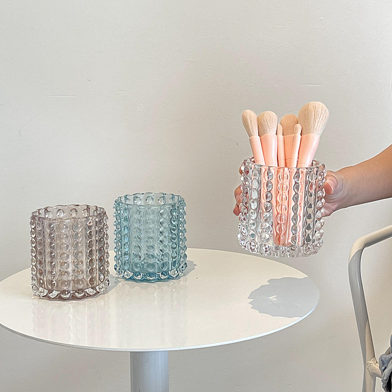 韓国ins風化粧ブラシ桶眉筆立て丸点ガラス筆立て小衆装飾シンプル置物デスクトップ収納