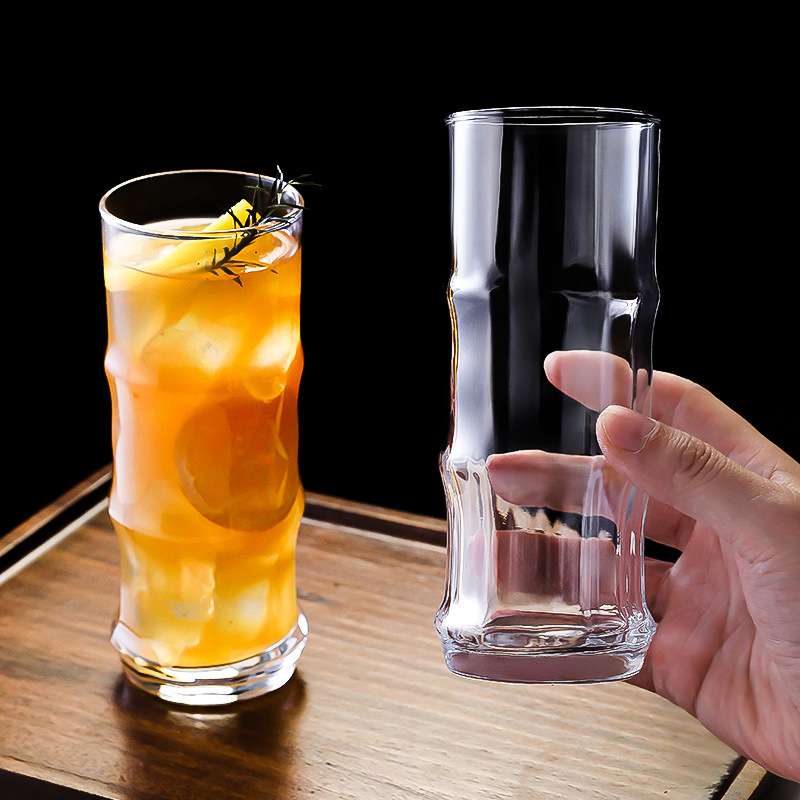 ネット赤ガラスクリエイティブ竹節カップ長飲杯ジュースカップネット赤ins風商用飲料カップ冷たい飲料コップ