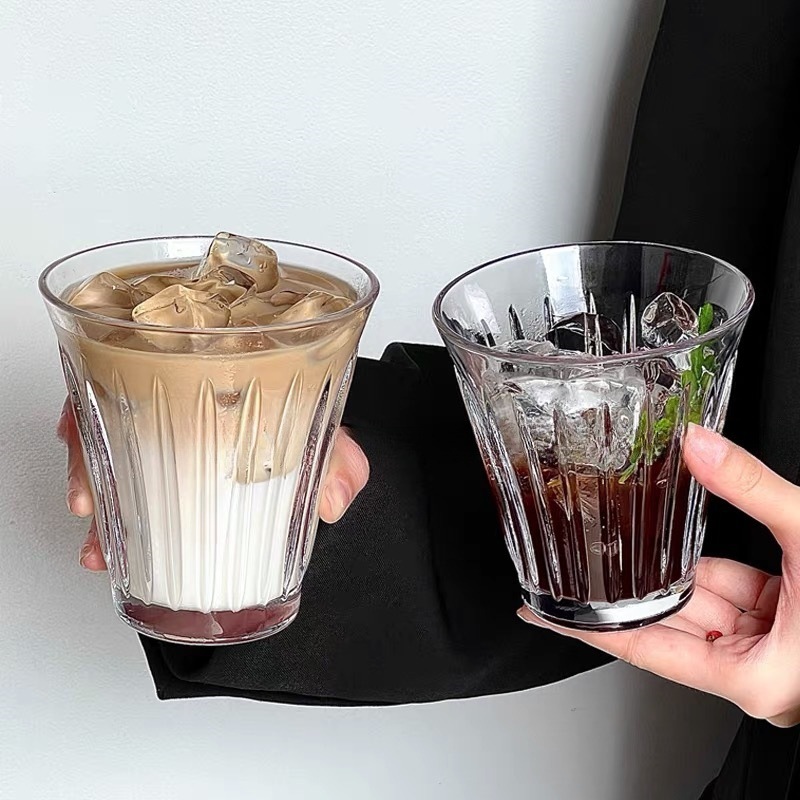 高颜値グラスins縦縞高足カップ家庭用飲料ジュースカップコーヒーカップデザイン感グラス