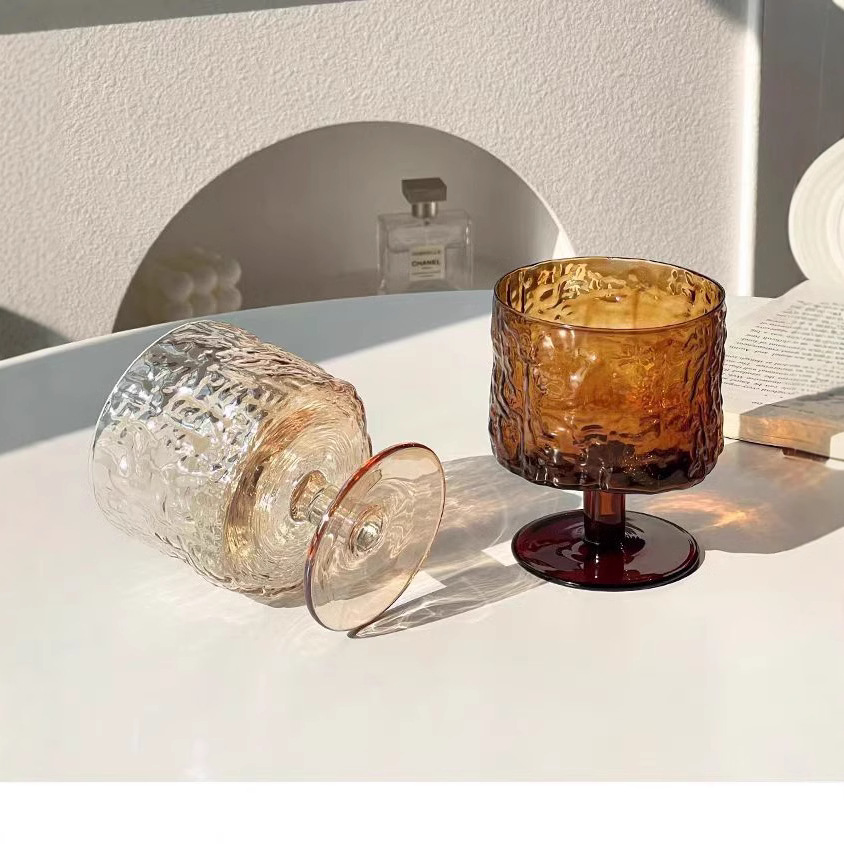 樹皮高足カップ中古大衆デザイン感家庭用ガラス気泡カップコーヒーカップ高颜値酒カップ