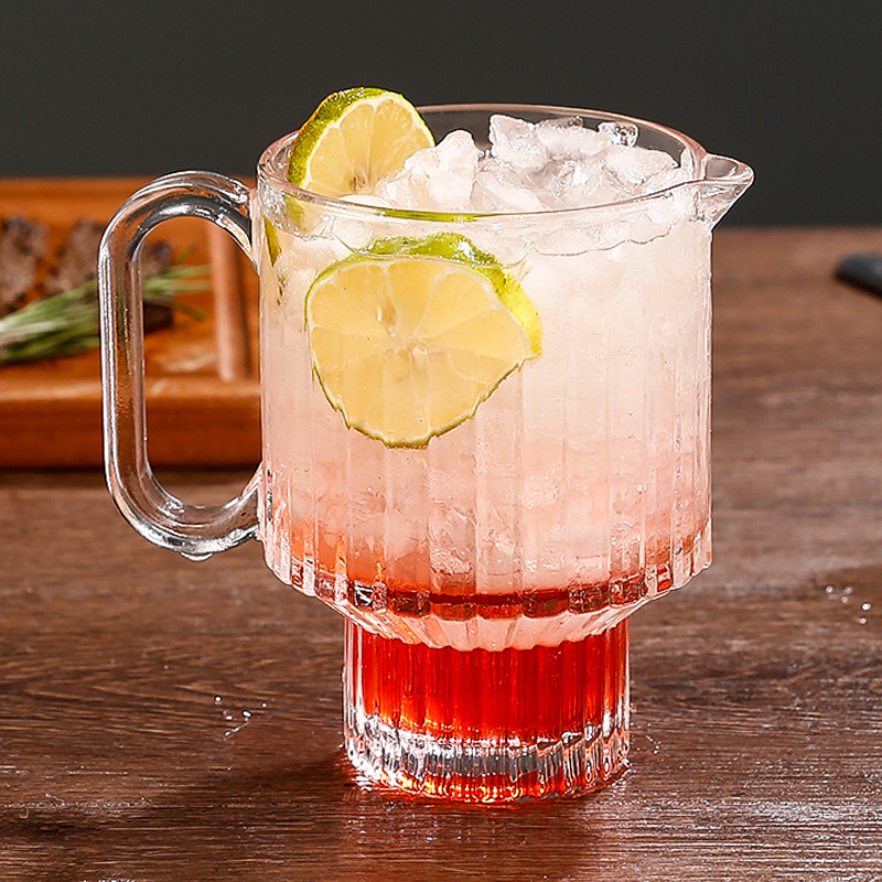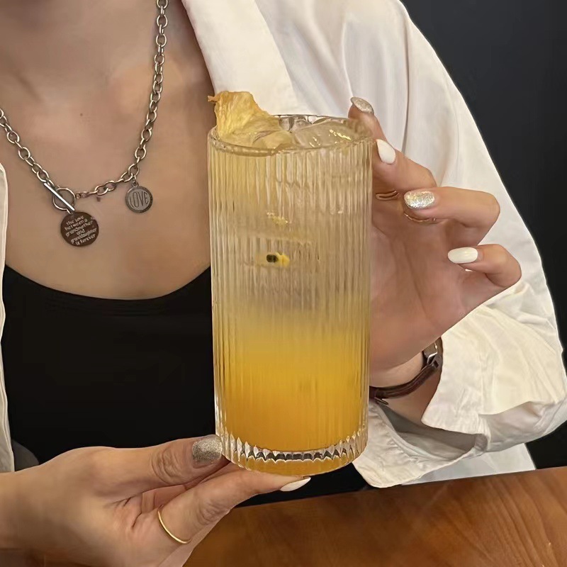 Ins風シンプルなストレートストライプのガラスカップアメリカ風コーヒーカップラテジュースカップソーダ飲料気泡カップ