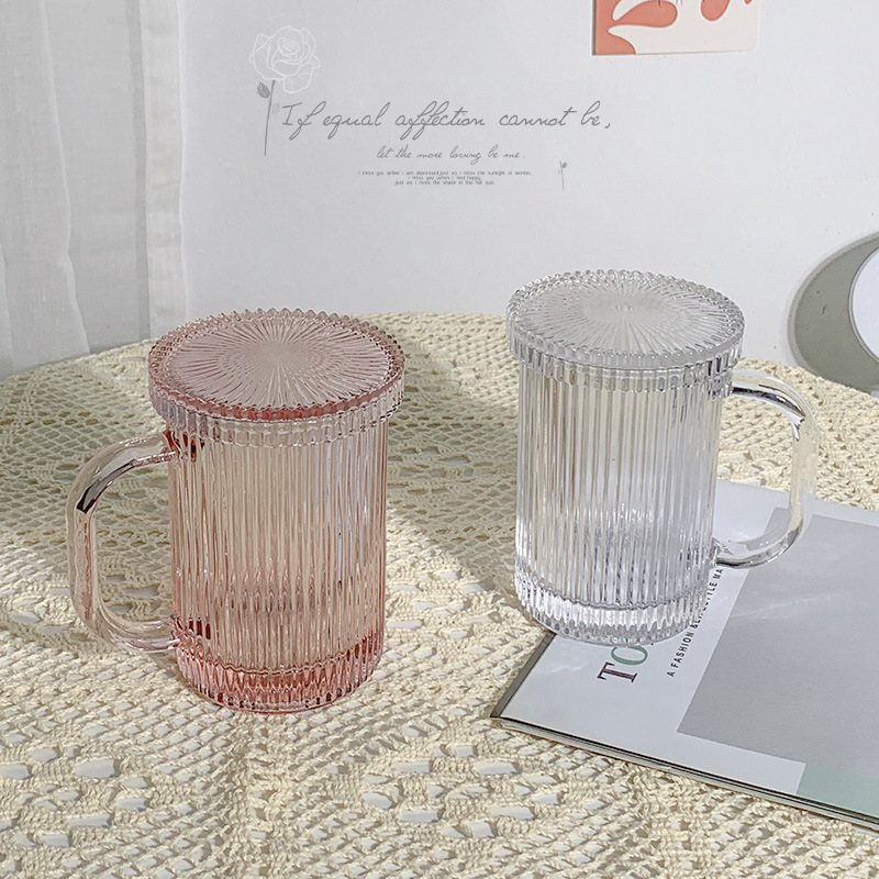 クロスボーダーインスタ风グラスヴィンテージカップコーヒーカップシンプル和风ストライプ水カップジュースカップミルクティーカップ