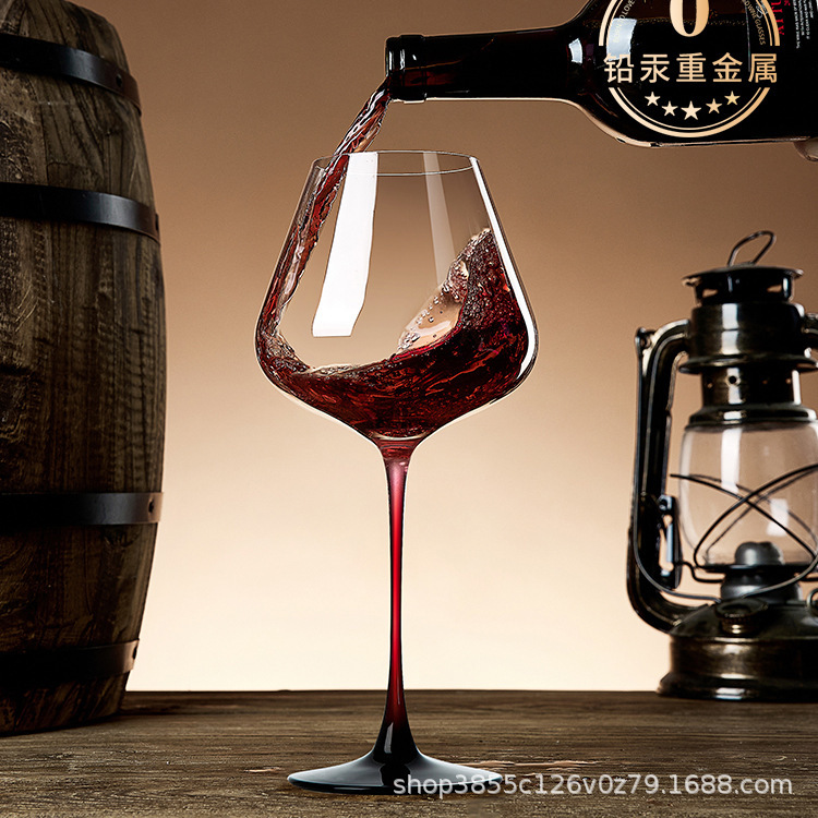 大サイズのブルゴーニュのワイングラスの家庭用の豪華なアイデアの水晶のガラスの大きい腹の黒い赤いネクタイのブドウの高足の杯