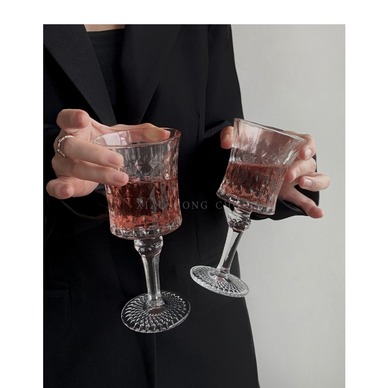 小衆ins風ヨーロッパ風高脚グラスレリーフダイヤモンドカップ高顔値シャンパンカップワイングラスジュースカップ