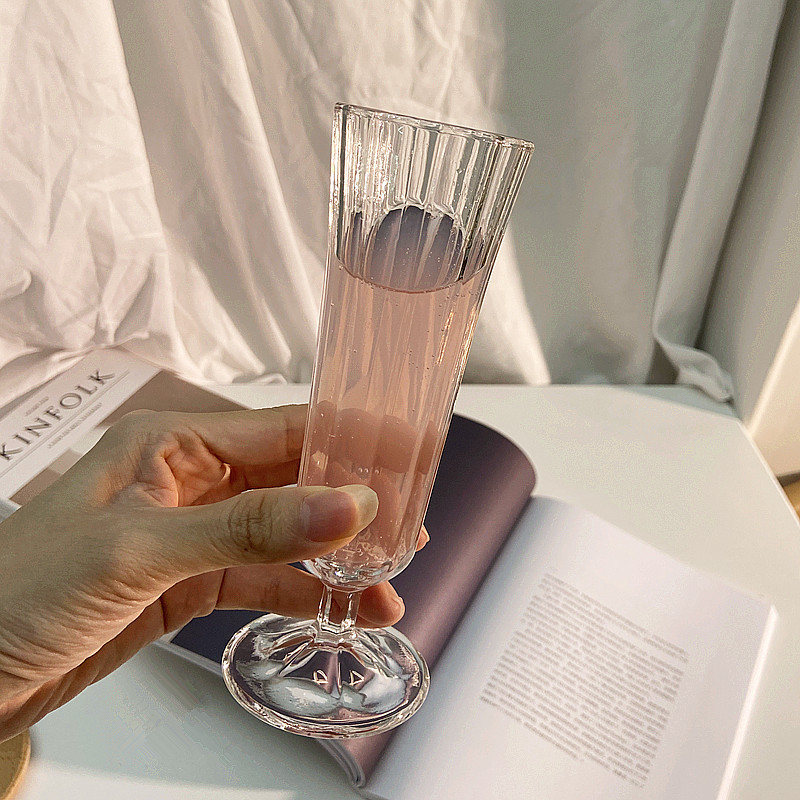 フレンチインスタ風レトロ高足ガラスラッパシャンパンカップ果実酒カップジュースカップコーヒーカップ高顔値美しい