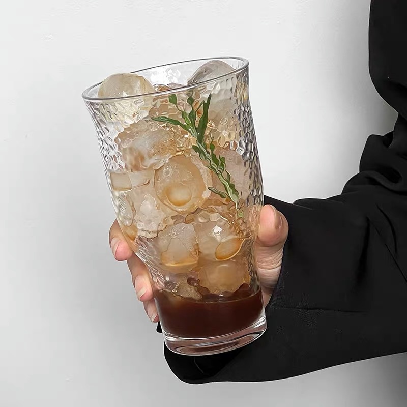 大容量复古果茶杯冰美式咖啡杯啤酒杯小众锤纹玻璃杯果汁杯饮料杯