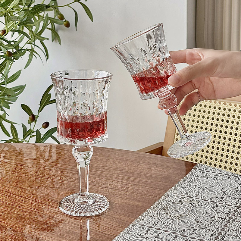 小衆insフランス透明高足カップ高顔値シャンパンカップワイングラスジュースカップヨーロッパ式レリーフグラス