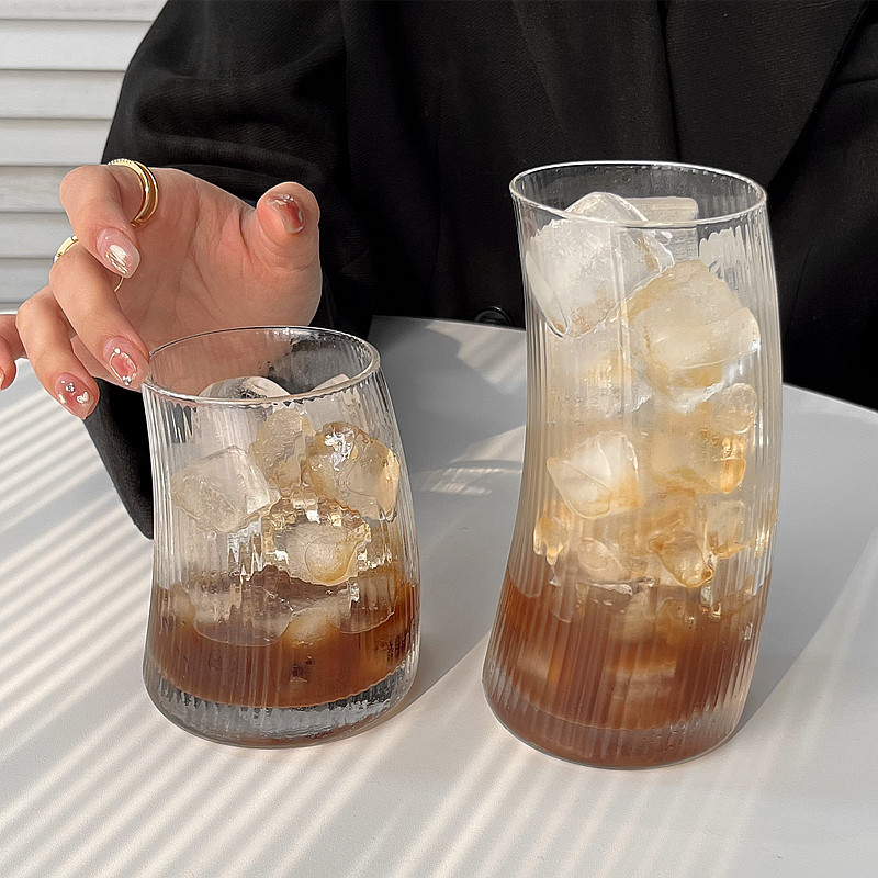 ストライプグラスins風飲水カップ子供ジュースカップ牛乳カップ氷コーヒーカップビール飲料カップ家庭用