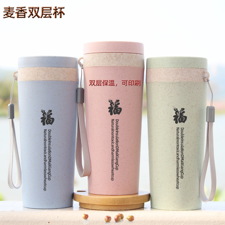 クリエイティブ広告カップ麦香カップ二重断熱麦わらカップシンプル携帯カップ印字ロゴ