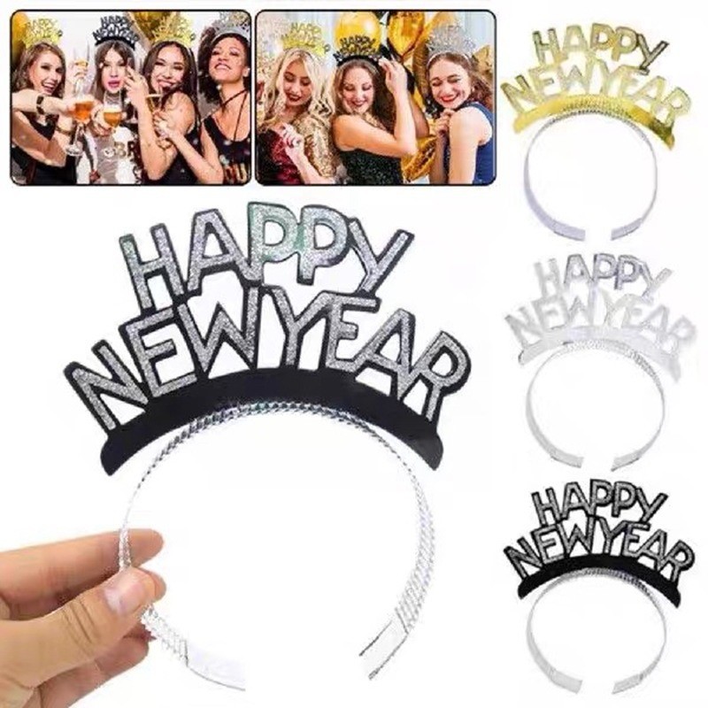 欧米風アルミ箔紙アルファベット髪フープhappy new yearクリスマスパーティー装飾ヘッドフープピンク髪飾り
