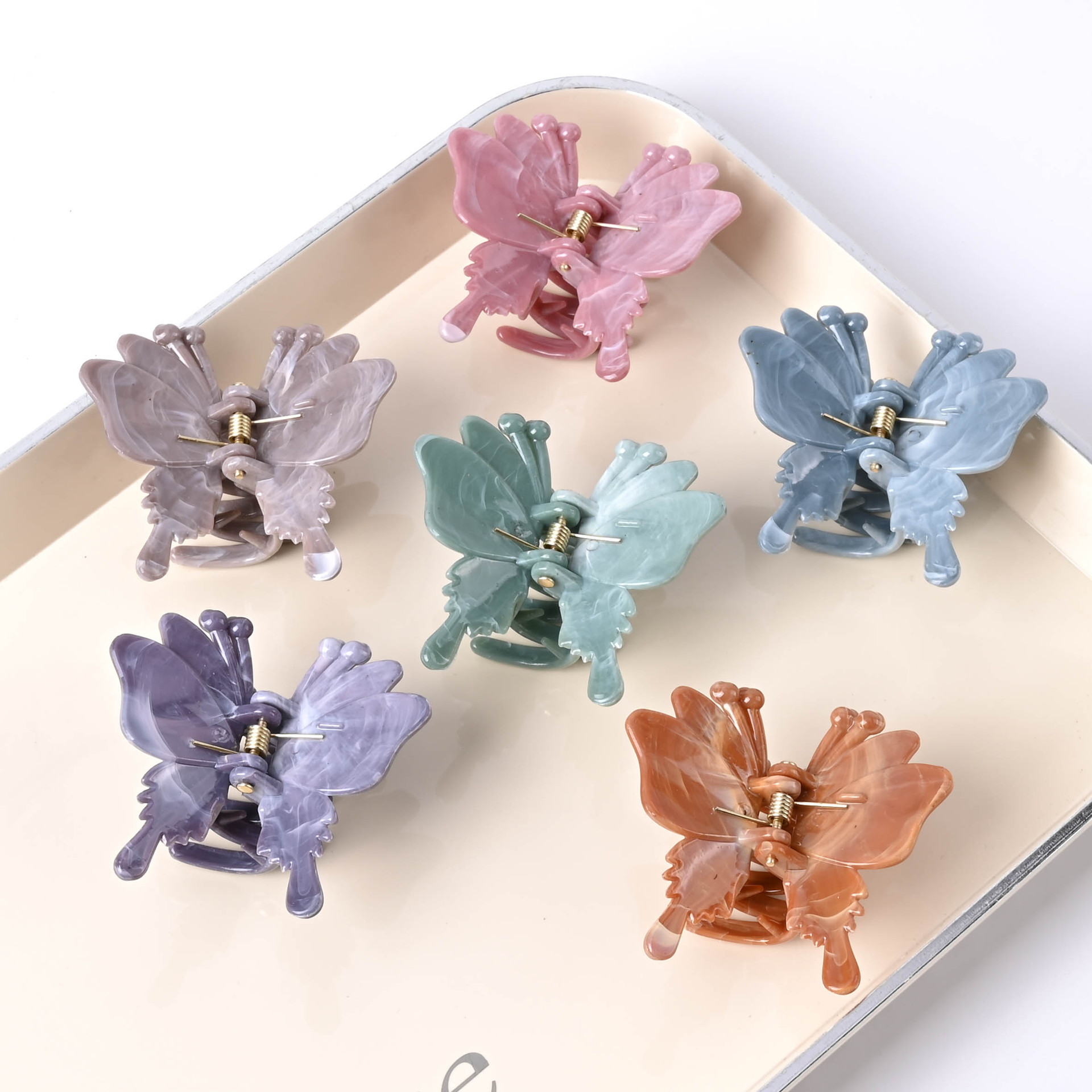 5cmミディアムバタフライハーフタイヘアクリップ、カラフルでスマッジされたファッショナブルで多用途な女の子の夏のヘアクリップ、後頭部用