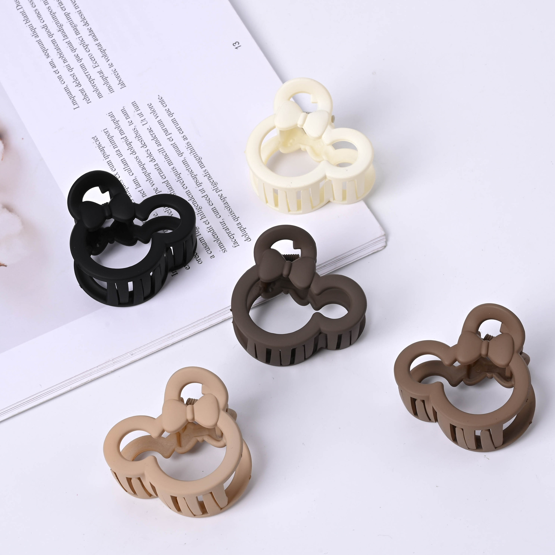 4.5cm Mサイズ かわいいミッキー 中空 レディース ハーフタイ グリッパー 前髪 サイドヘアピン ヘアアクセサリー シンプル 無地 コーヒー色