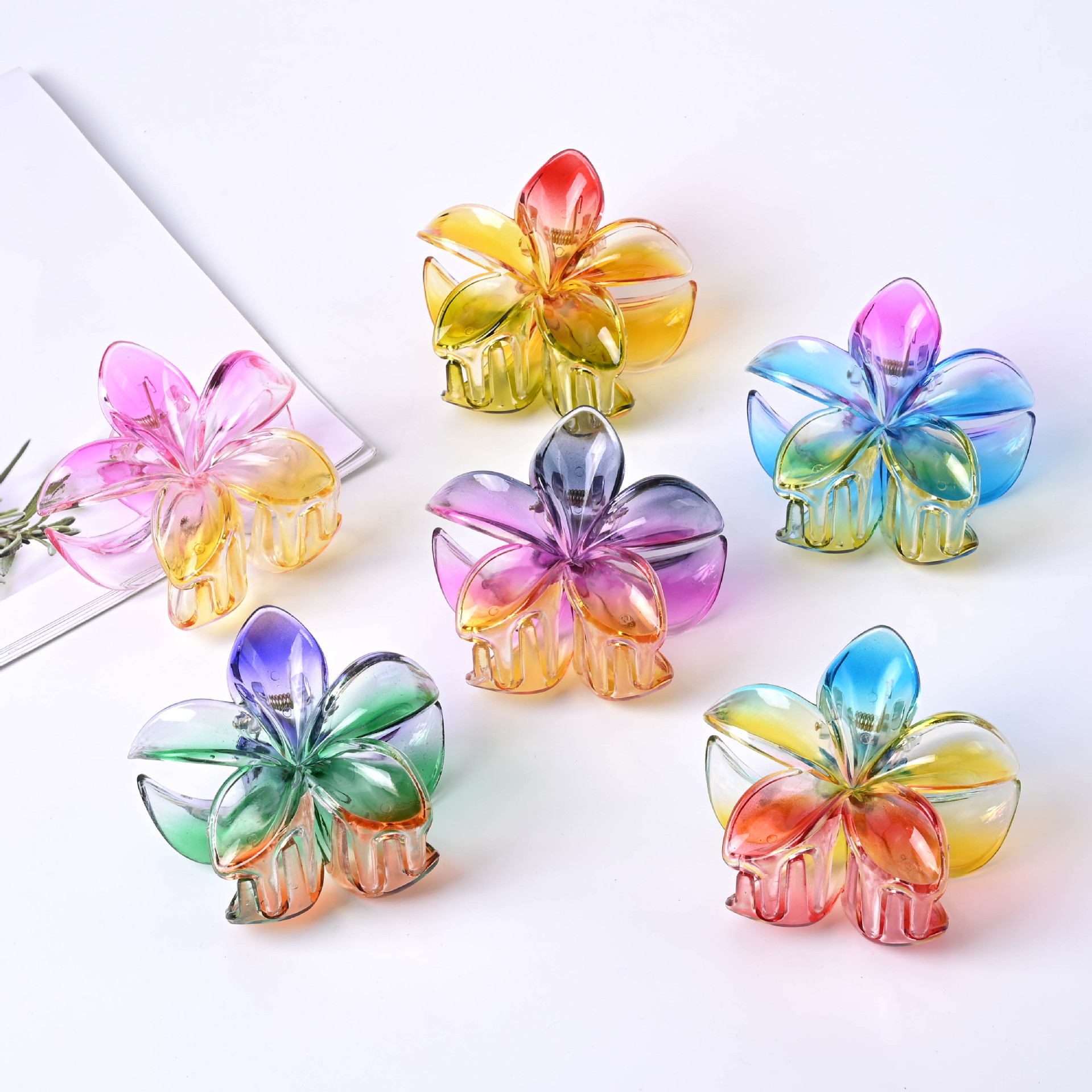 ヨーロッパとアメリカのクロスボーダー大型 8.5 センチメートル女性の夏のグラデーションカラーのプルメリアアマゾン人気のベゴニア爪クリップ
