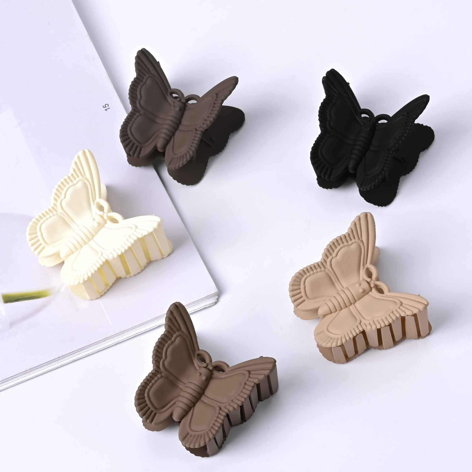4.5cmミディアムバタフライグリッパー、シンプルなデイリーソリッドカラーデザイン、質感のある表面プラスチックヘアグリッパーヘアアクセサリー