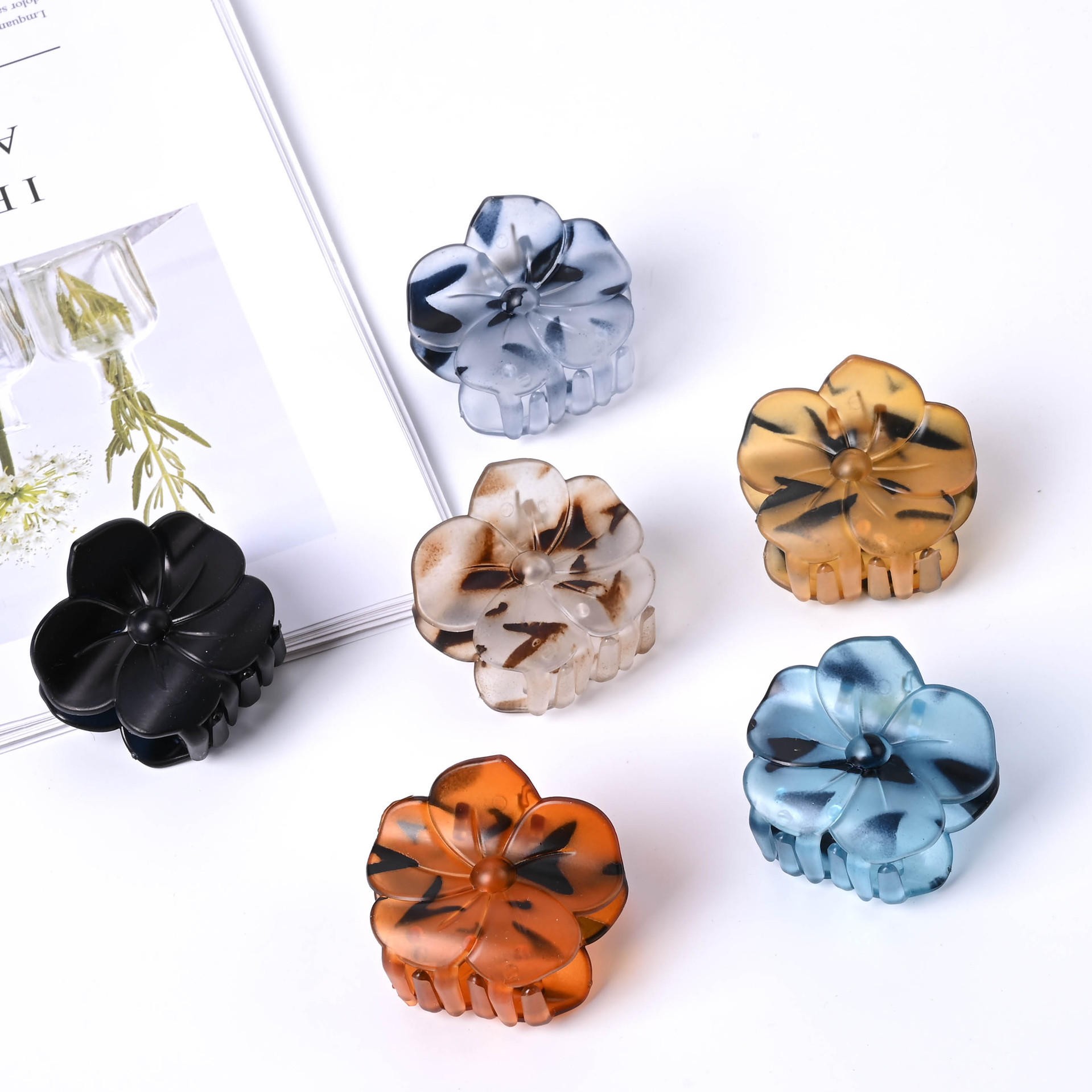 4.5cm テクスチャードマットハイエンドマットミディアムフラワーグリッパー夏の女性のヘアクリップハーフタイヘアアクセサリー
