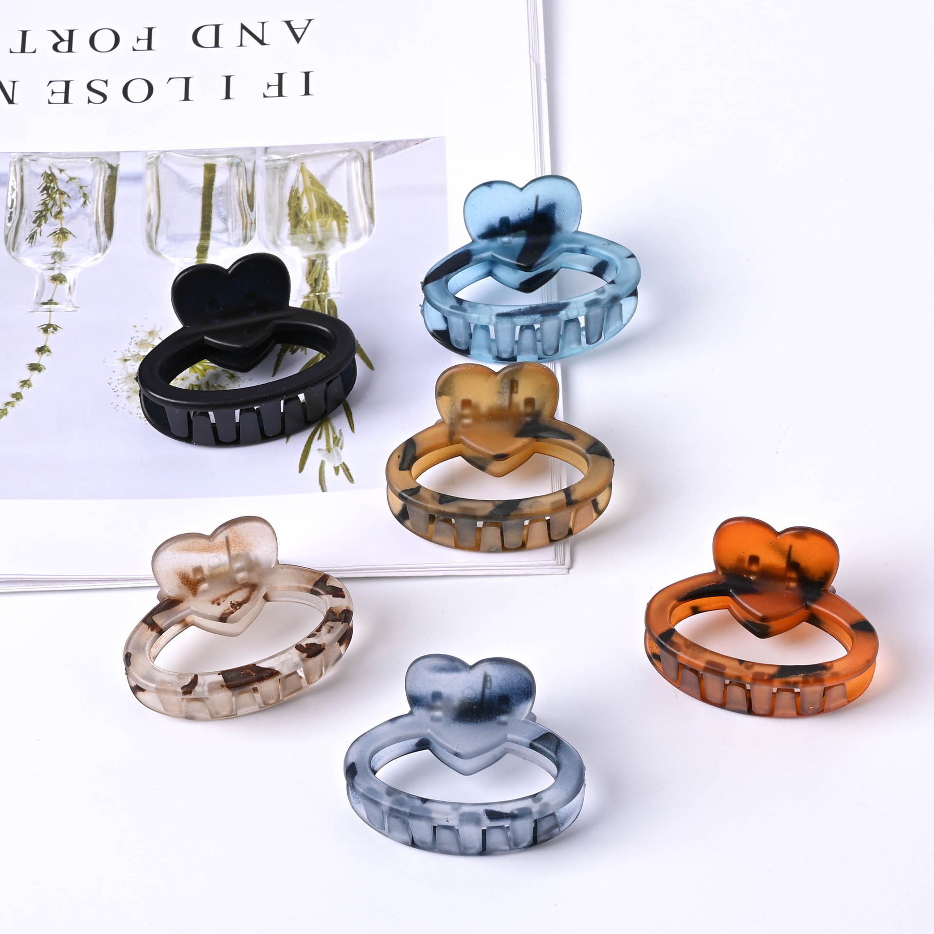 4.5cm中号国境を越えた新しい透明な黒い亀甲色の女性は、日常の夏の爪に髪を挟む