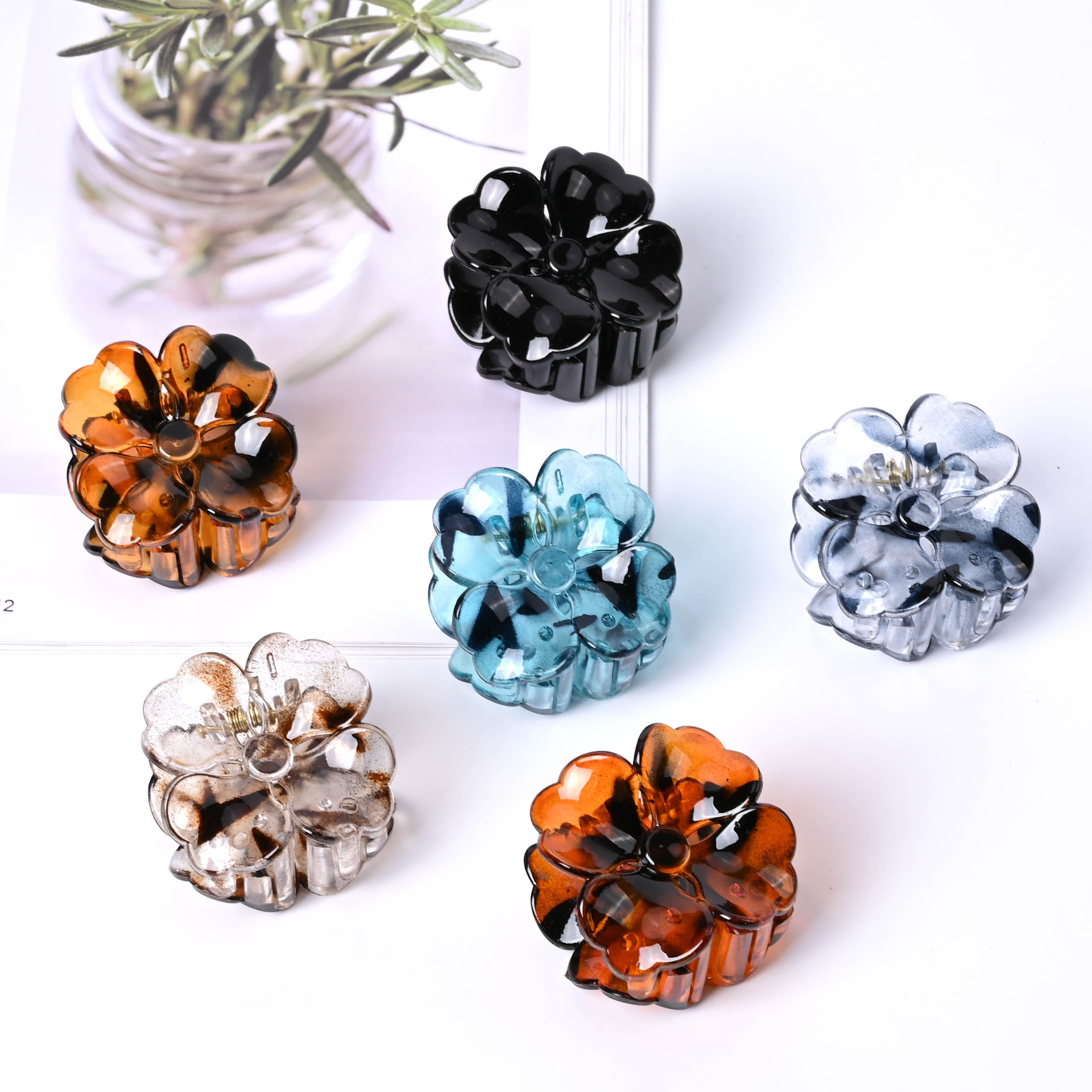 4.5cm中号霧面マット楕円クリップ女夏半クリップ百合髪飾りクロスボーダー人気クリップ