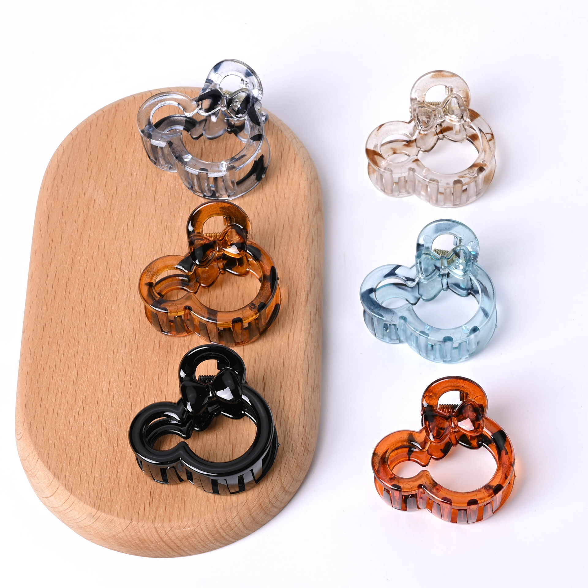 4.5cm中号ミッキー透明豹点新型越境ミッキー耳蝶結びクリップ女性夏半刺しクリップ