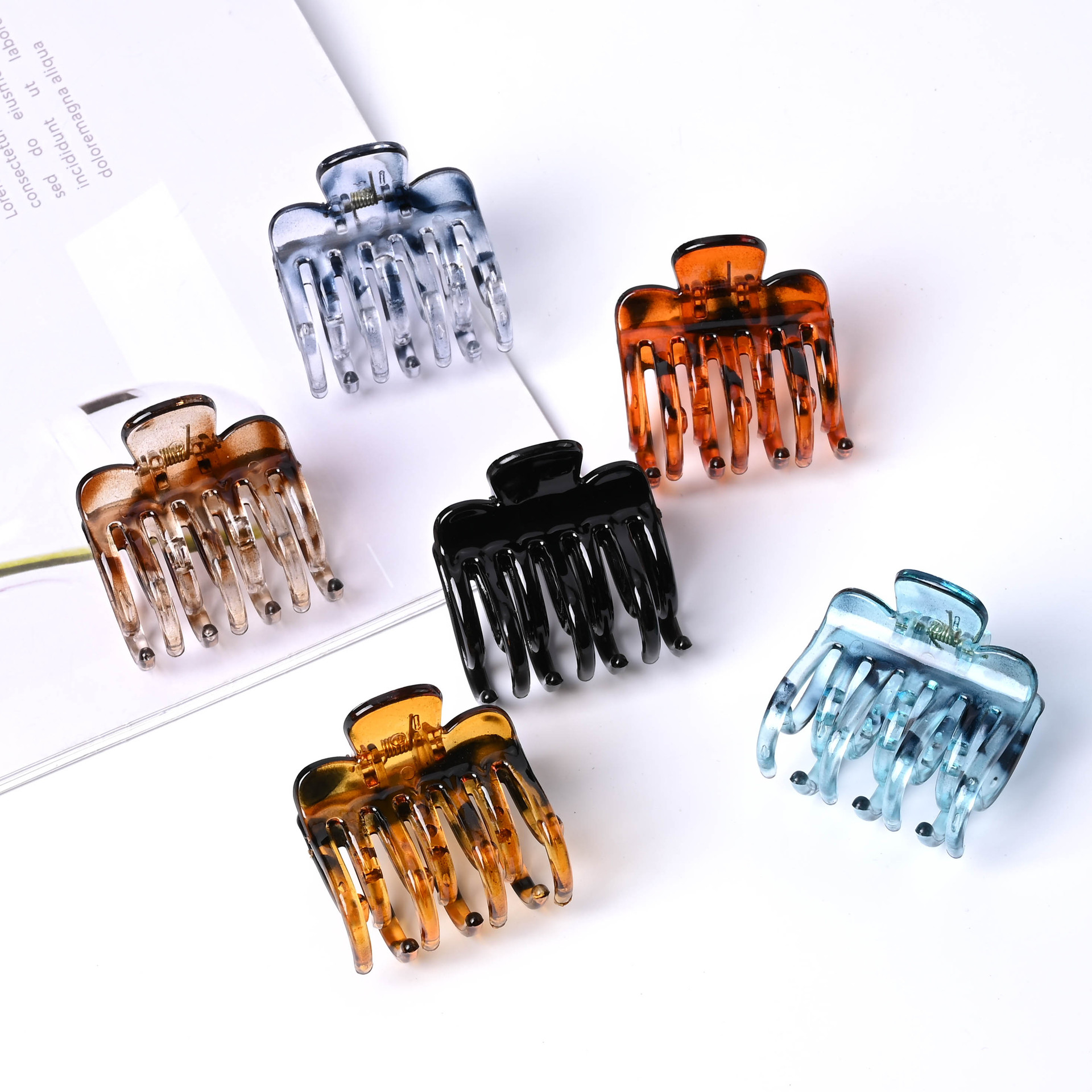 4.5cm新型中号二列歯女子学生透明カラーファッション百合毛高馬尾固定クリップ