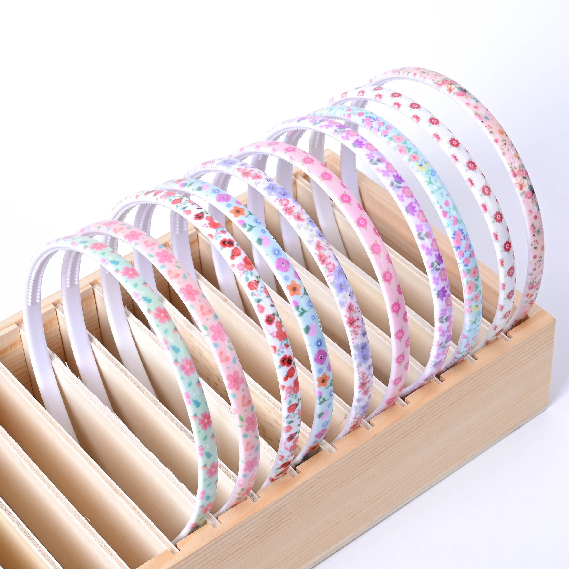 0.8cmの細い女性の花のプリントの花の甘いかわいいカチューシャが国境を越えて人気のあるカラーの新しい髪飾りのカチューシャ