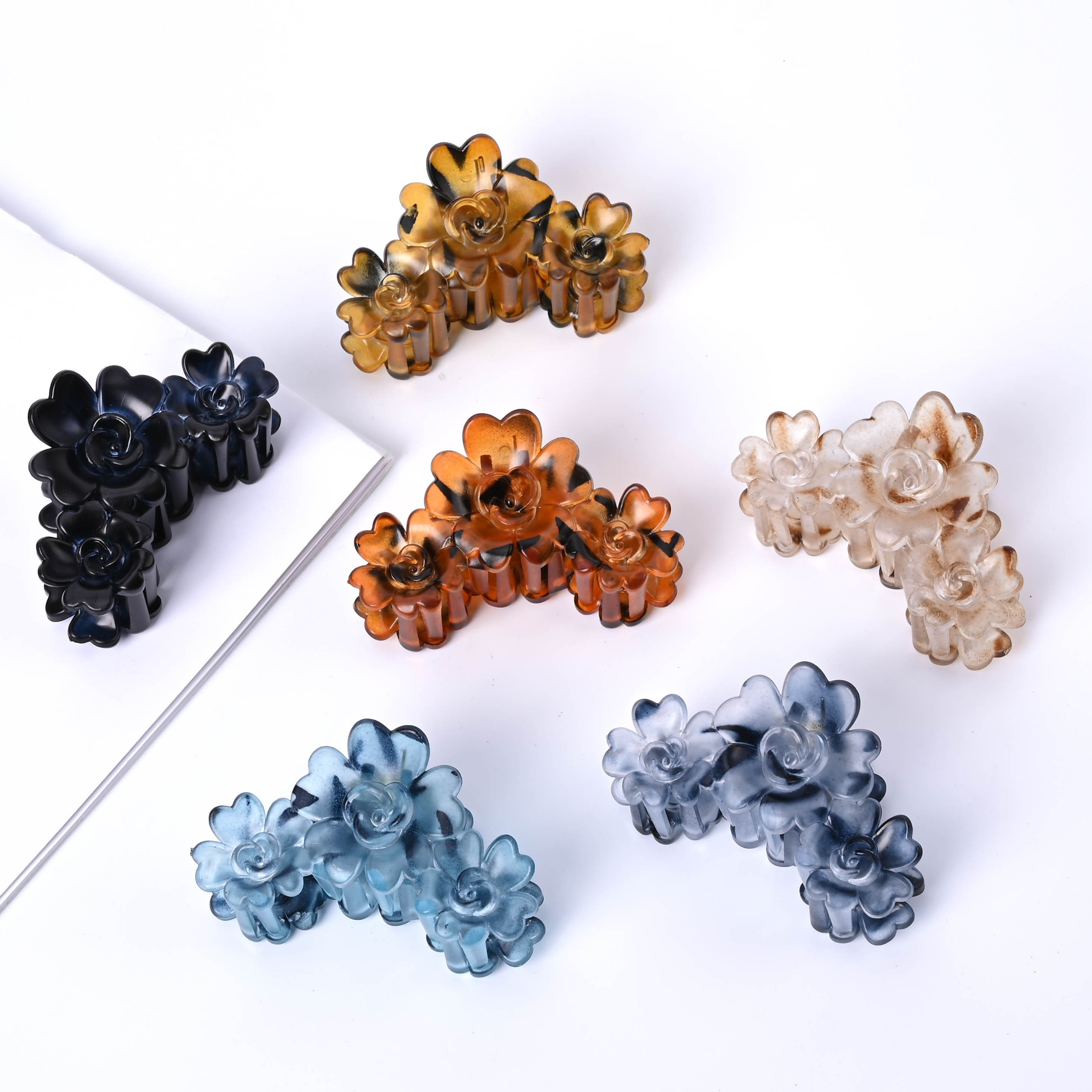 6cmの中号の3つの花は女性の半分の髪を挟みます。