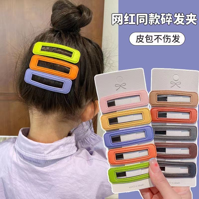 韓国版pu皮革bbクリップ子供用ヘアピン女の子サイドクリップ前髪前髪額割れヘアピン傷なしちぎりクリップ髪飾り