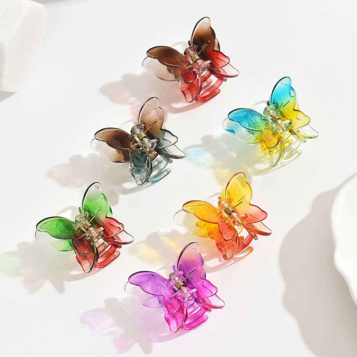 3.5cm蝶イミテーショングラデーション透明カラークリップレディース夏ハーフザヘアクリップクロスボーダー卸売アクセサリー