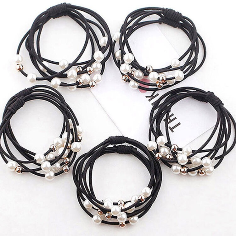 九数珠の頭紐のゴムの輪は簡単です。韓国の清新な三合一真珠の頭飾りの輪のアクセサリーです。