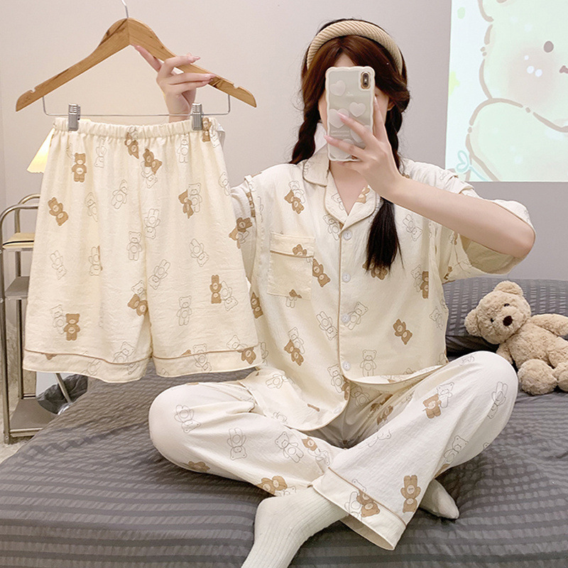 2025胸パッド付き妊婦パジャマ夏の薄い雲綿半袖哺乳パジャマ月子服産後三点セット