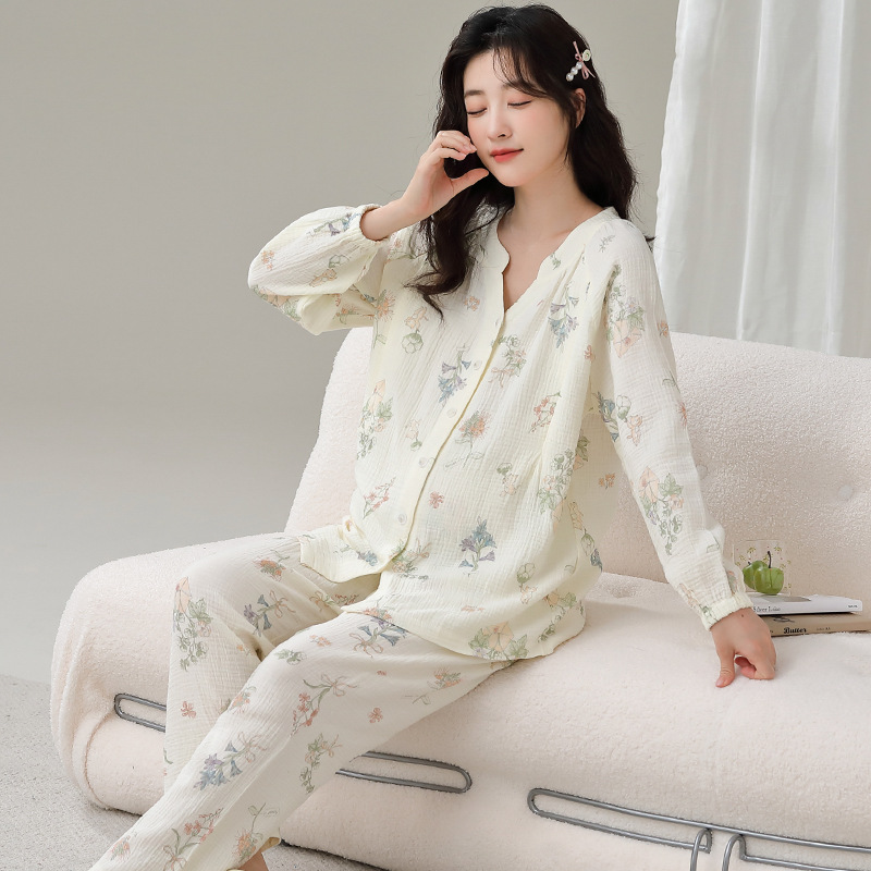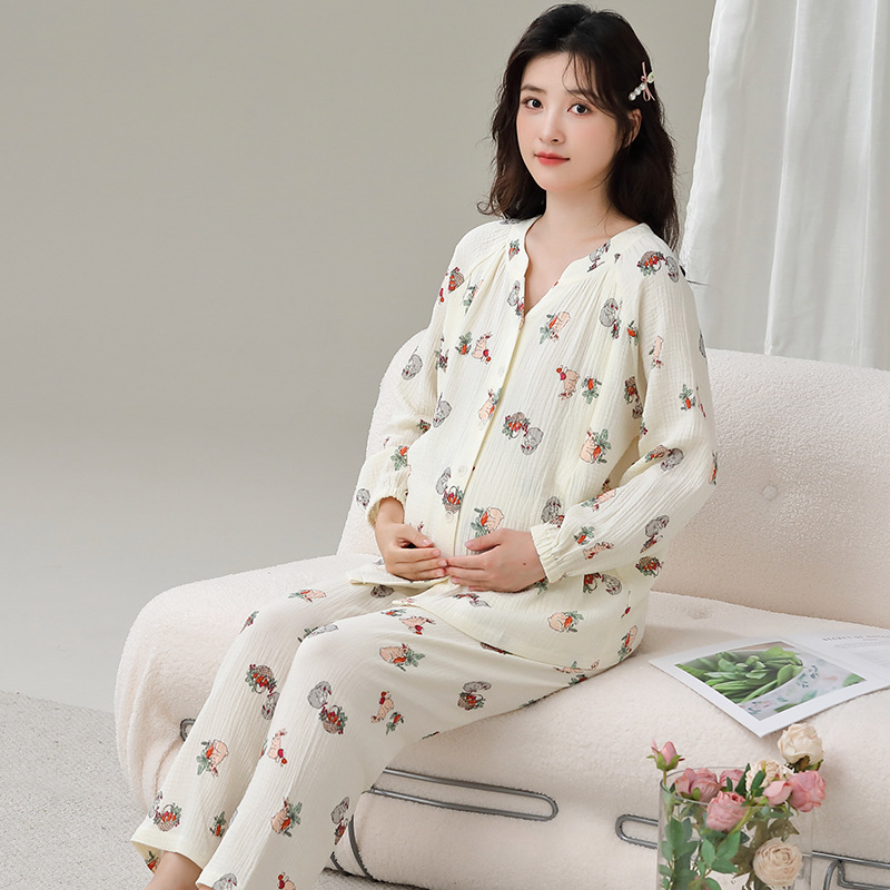 2025純綿ガーゼ月子服春夏薄手産後授乳中妊婦パジャマ女性産婦授乳ホームウェア