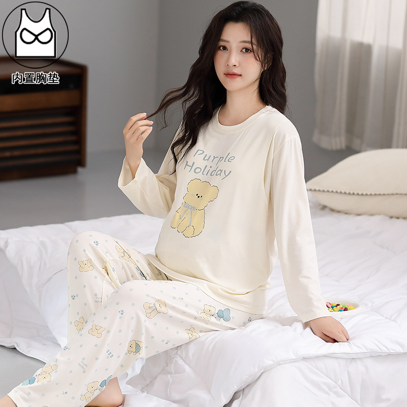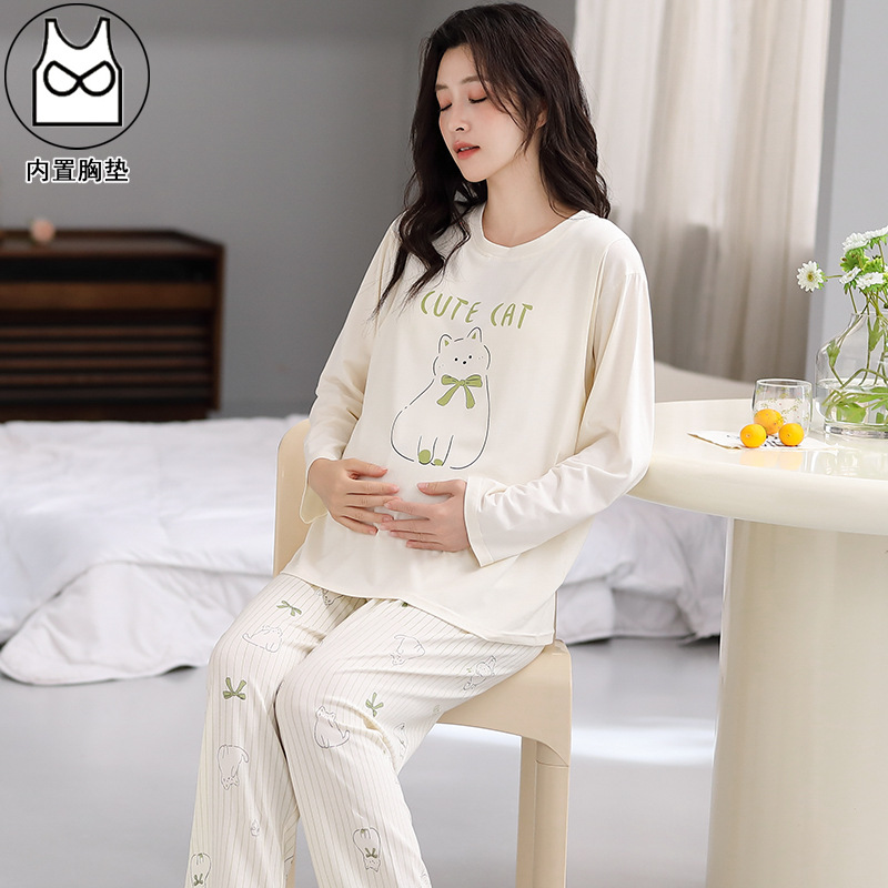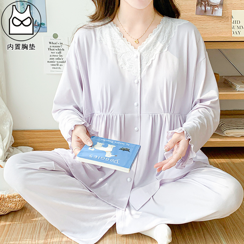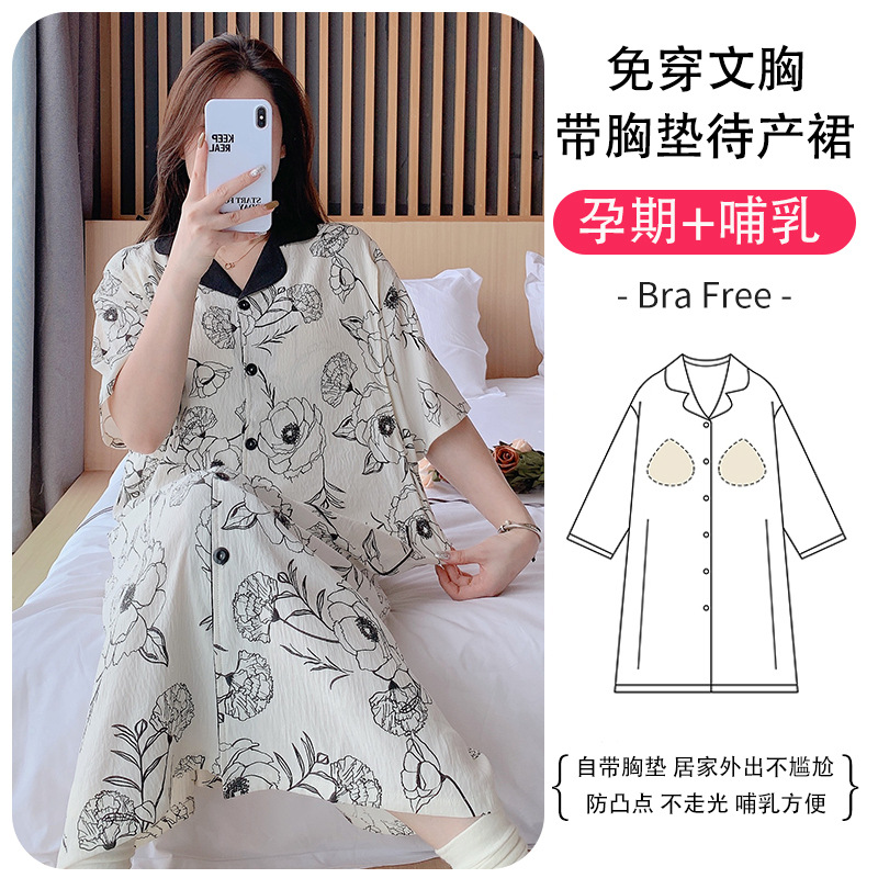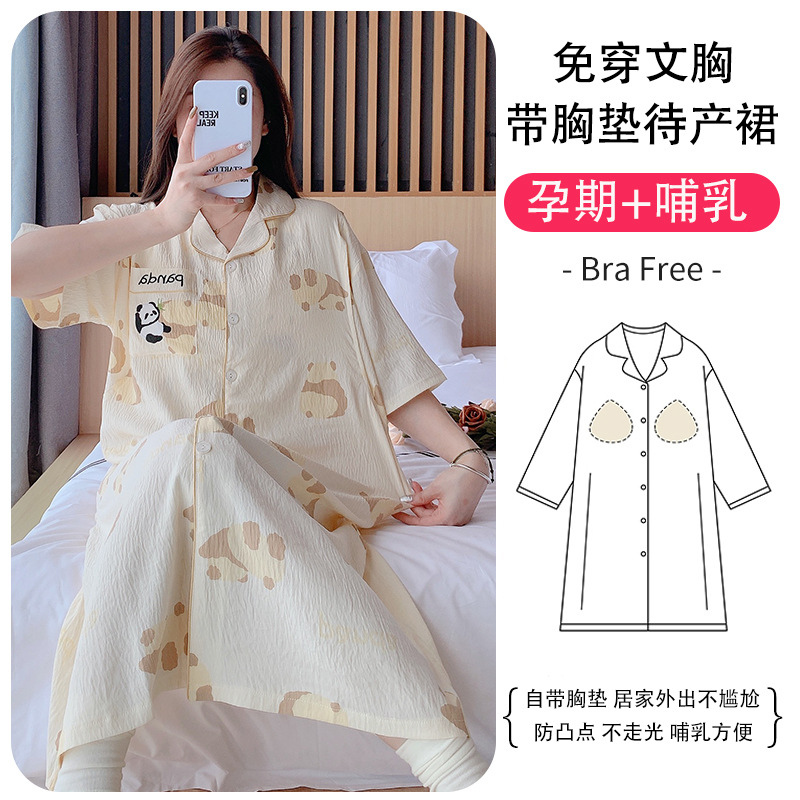 2025胸パッド付き春夏薄手6雲綿妊婦パジャマ産後出産予定家庭服妊娠期月子服7
